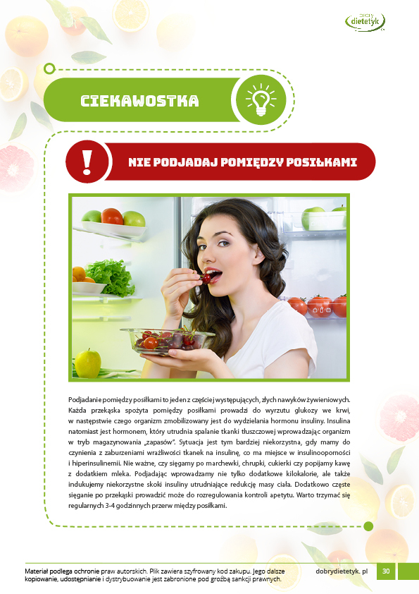 Dodatkowo do opracowanego planu dietetycznego otrzymasz atrakcyjnie przygotowane ciekawostki i wiadomości żywieniowe, które mam nadzieję pozwolą Ci zrozumieć wiele spraw związanych z nurtującym Cię problemem, a także przyczynią się do zwiększenia ogólnej wiedzy żywieniowej.