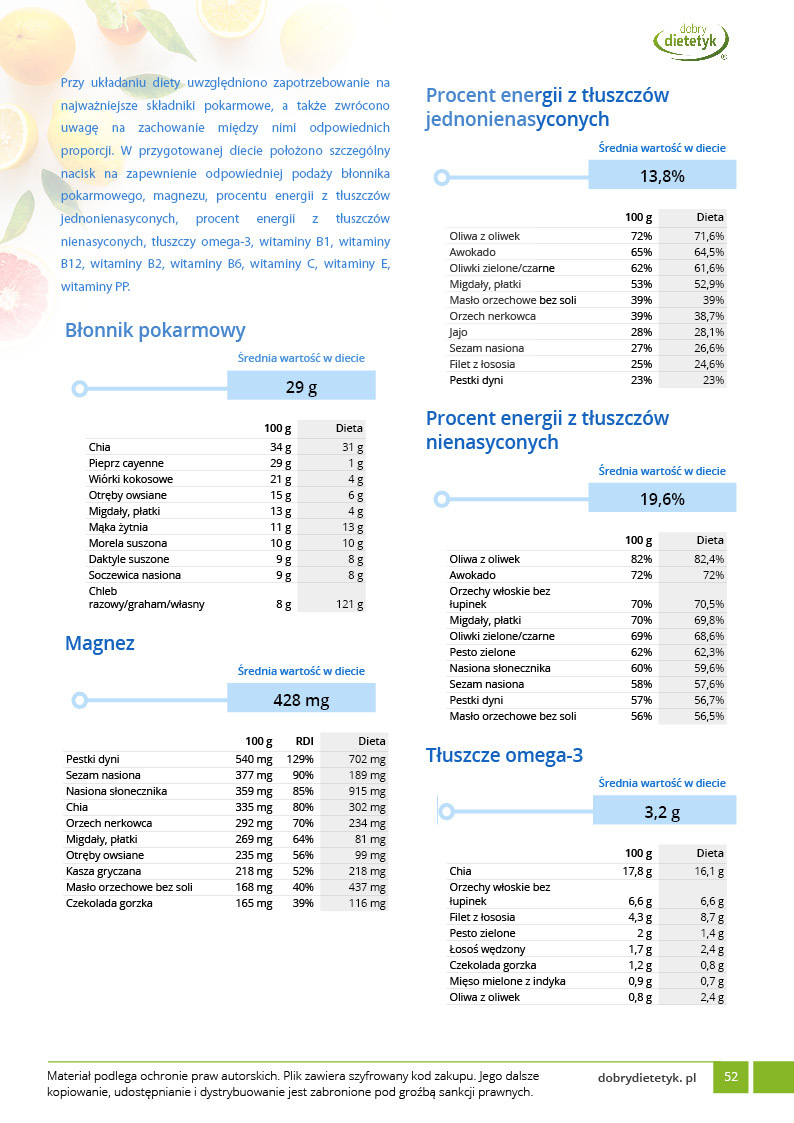 Dodatkowo do opracowanego planu dietetycznego otrzymasz atrakcyjnie przygotowane ciekawostki i wiadomości żywieniowe, które mam nadzieję pozwolą Ci zrozumieć wiele spraw związanych z nurtującym Cię problemem, a także przyczynią się do zwiększenia ogólnej wiedzy żywieniowej.
