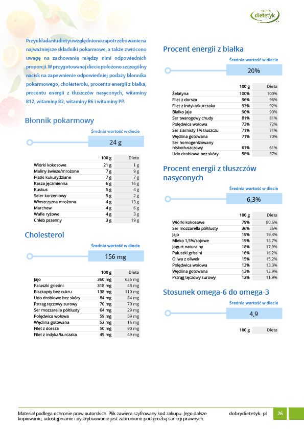 Dodatkowo do opracowanego planu dietetycznego otrzymasz atrakcyjnie przygotowane ciekawostki i wiadomości żywieniowe, które mam nadzieję pozwolą Ci zrozumieć wiele spraw związanych z nurtującym Cię problemem, a także przyczynią się do zwiększenia ogólnej wiedzy żywieniowej.