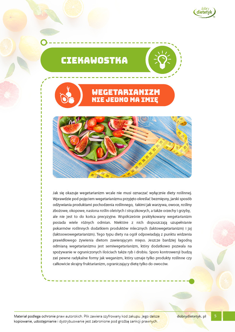 Dodatkowo do opracowanego planu dietetycznego otrzymasz atrakcyjnie przygotowane ciekawostki i wiadomości żywieniowe, które mam nadzieję pozwolą Ci zrozumieć wiele spraw związanych z nurtującym Cię problemem, a także przyczynią się do zwiększenia ogólnej wiedzy żywieniowej.